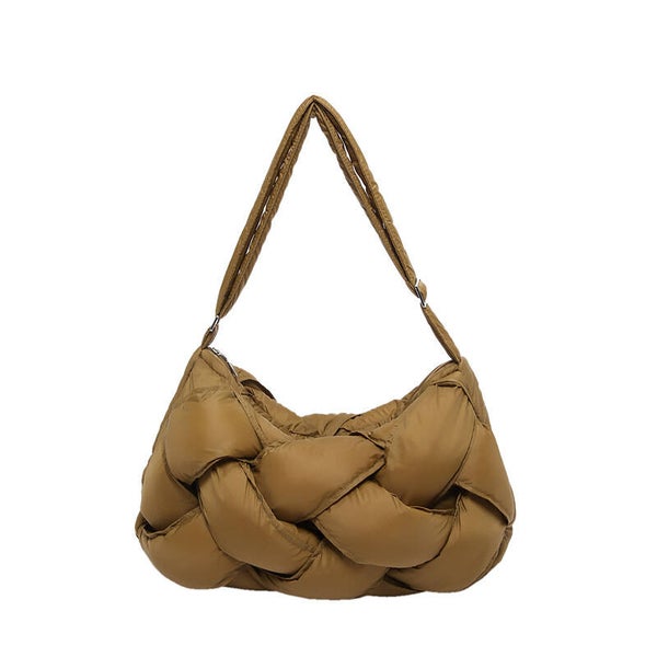 Crafted with a bold woven design and durable nylon material, the Braided Puff Shoulder Bag combines cozy texture with everyday functionality. This eye-catching piece features an oversized braided silhouette with a soft, padded finish that adds volume without the bulk. Lightweight yet roomy, it’s perfect for carrying your essentials in effortless style.