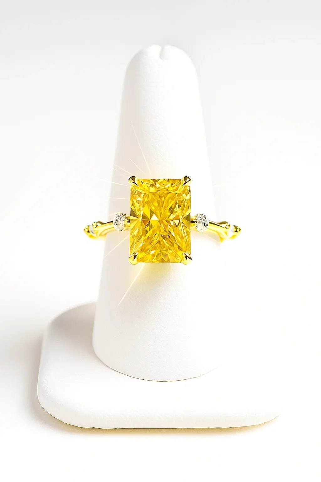 Stone: Brilliant radiant-cut yellow cubic zirconia centerpiece